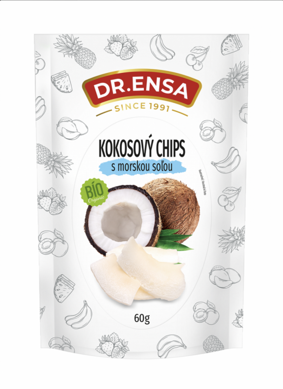 - BIO Kokosové chipsy Dr. ENSA 60g s MOŘSKOU SOLÍ