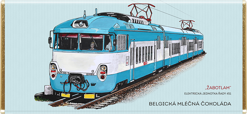 Čokoláda RETRO 100 g vlak Elektrická jednotka řady 451 „Žabotlam“ mléčná - VÝPRODEJ !!! DMT: 10/2025