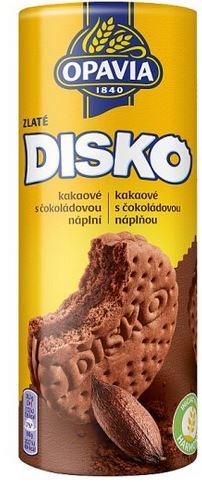 - Sušenky OPAVIA Zlaté DISKO 169 g KAKAOVÉ s ČOKOLÁDOVOU náplní