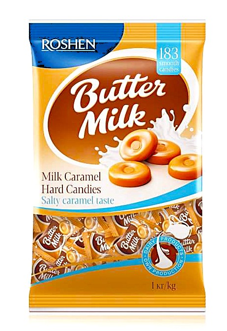 ROSHEN BUTTER MILK sladomléčný drops s karamelovou příchutí - jednotlivě balené. Hmotnost 1 kg.