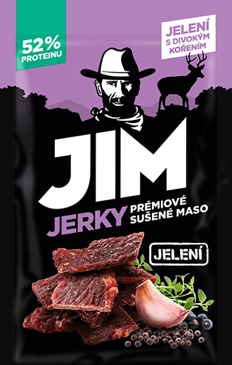 - JIM Jerky 23g sušené maso JELENÍ S DIVOKÝM KOŘENÍM