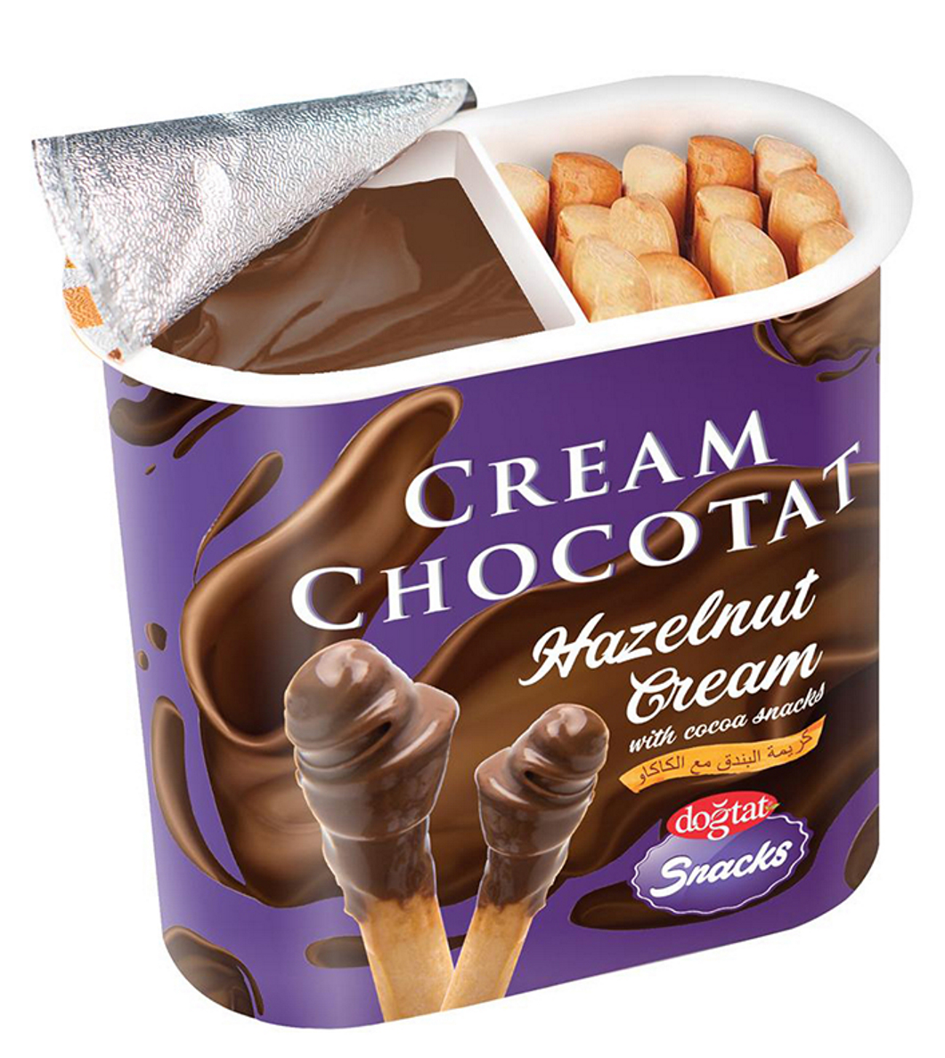 Křupavé pšeničné tyčinky s čokoládovým krémem z lískových oříšků. Hmotnost 55g.