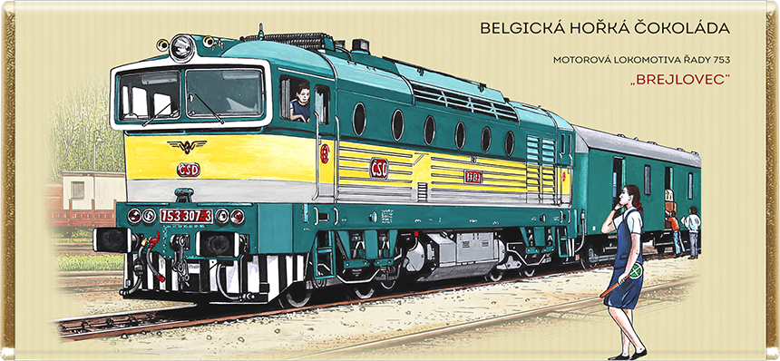 - Čokoláda RETRO 100 g vlak Motorová lokomotiva řady 753 „Brejlovec“ hořká