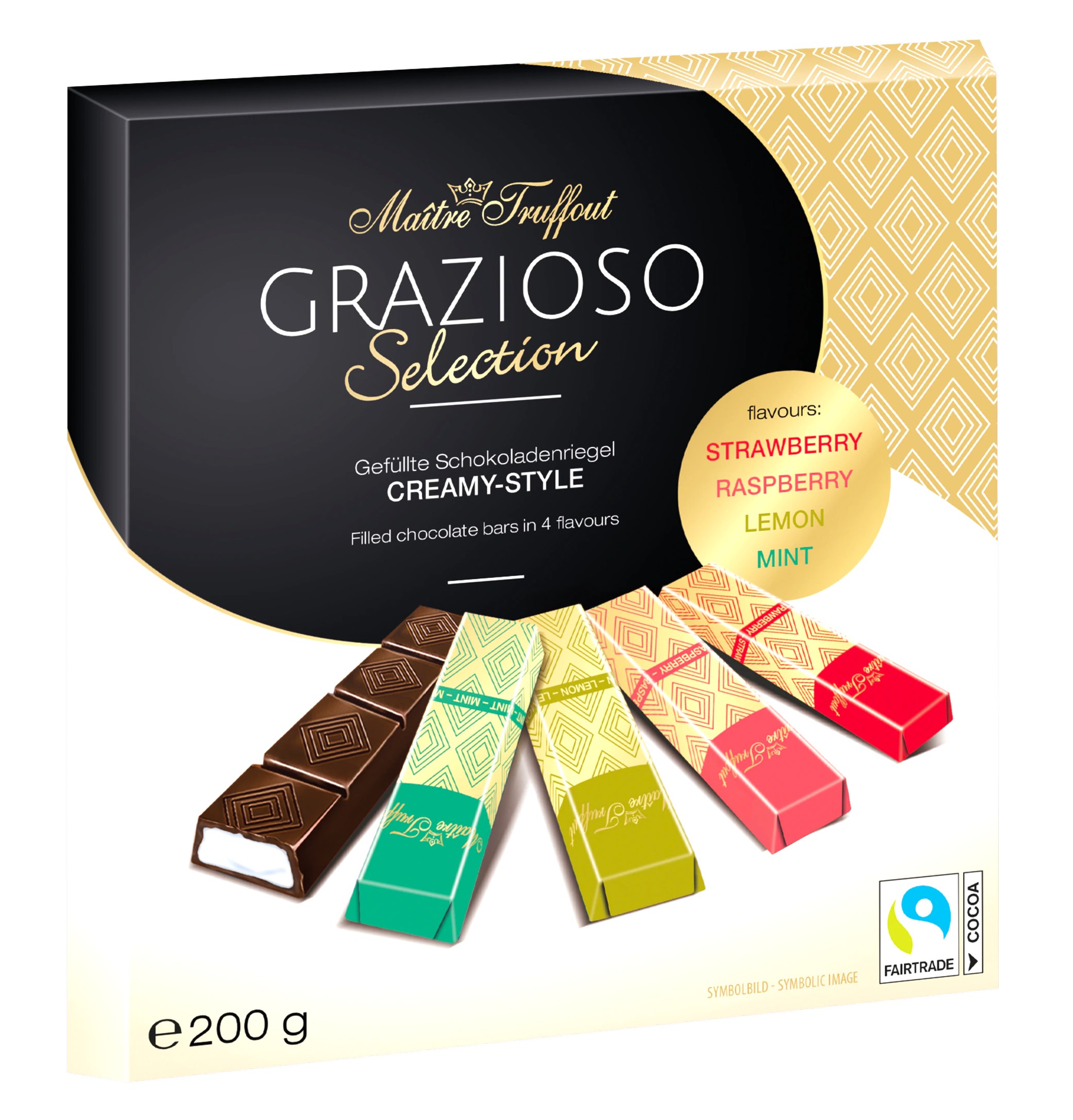 Maître Truffout 200g Grazioso Selection mini čokoládky MIX - JAHODA, MALINA, MÁTA, CITRON