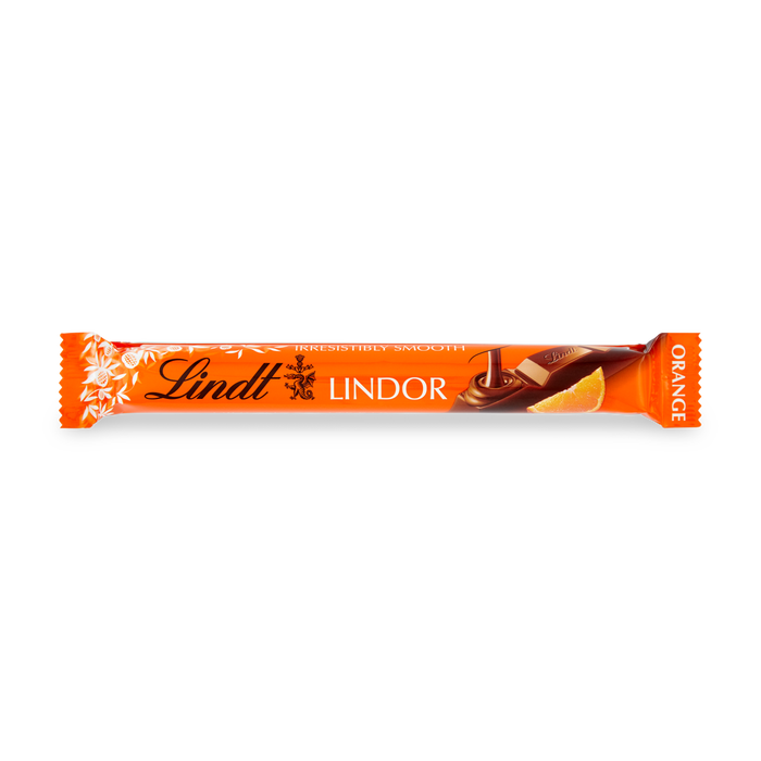 Lahodná čokoláda Lindt v podobě tyčinky LINDOR s jemnou tekutou pomerančovou náplní (40%). Hmotnost 38g.