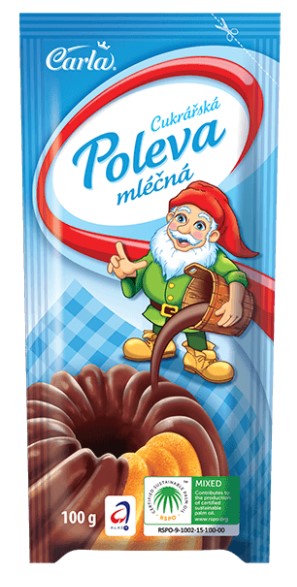 Jemná mléčná cukrářská poleva Carla. Hmotnost 100g.