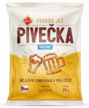 Pivečka - solené preclíky v originálním tvaru pivních sklenic, které určitě potěší nejednoho pivaře. Za jejich kvalitu ručí Mistr pekař Kamil Večerka. 80 g