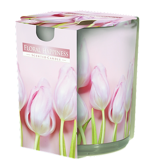 Vonná svíčka Bispol - sklenička s potiskem - FLORAL HAPPINESS (RŮŽOVÉ TULIPÁNY)
