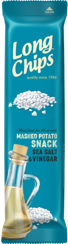 LONG CHIPS - bramborový snack - dlouhé chipsy - s příchutí mořské soli a viného octa. Hmotnost: 75 g