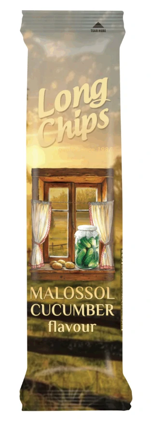 LONG CHIPS - bramborový snack - dlouhé chipsy - s příchutí nakládaných okurek.