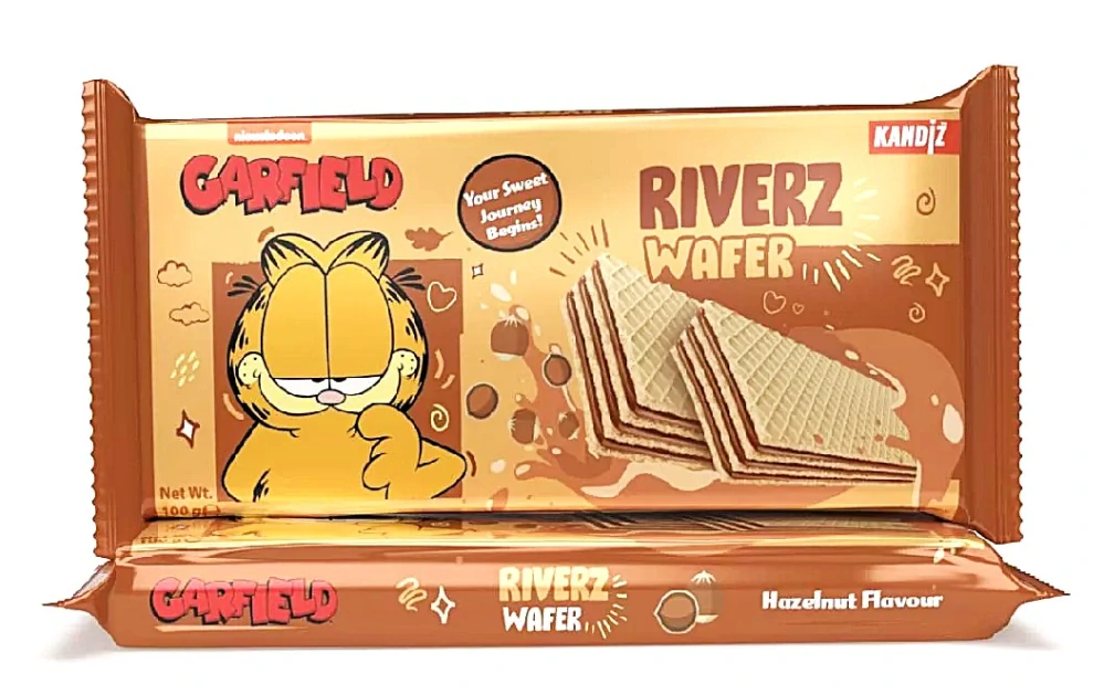 Oplatky s náplní s lískooříškovou příchutí. Hmotnost 100 g.