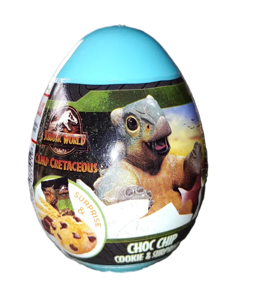 Plastové vajíčko Choc Chip se sušenkou a překvapením uvnitř. Nasbírej si kolekci z Jurského parku. Hmotnost 5,5 g.