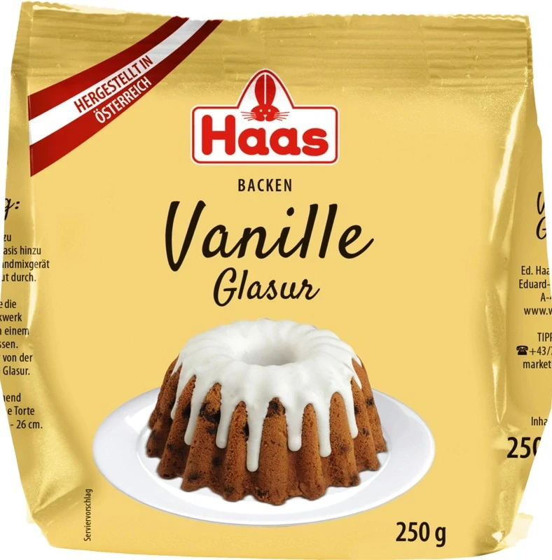 Poleva Haas VANILLE GLASUR 250gSkladem99,00 Kč/ ks88,39 Kč bez DPH