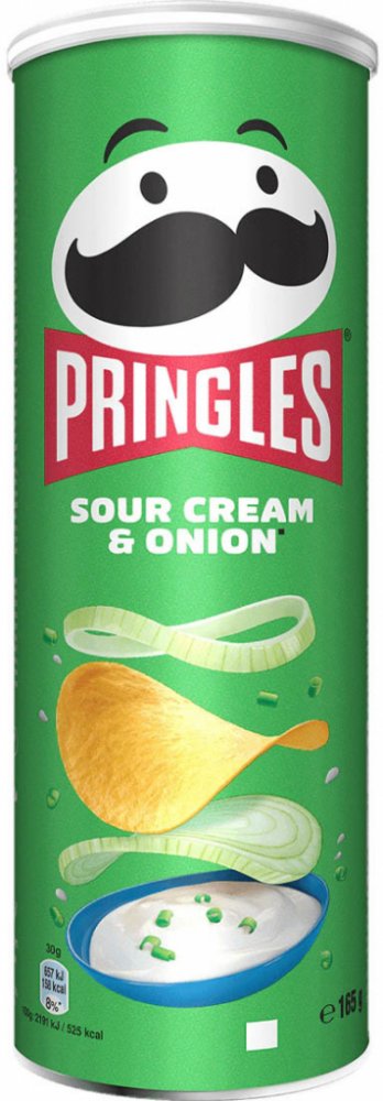Křupavý PIKANTNÍ bramborový snack PRINGLES s příchutí ZAKYSANÉ SMETANY a CIBULE. Hmotnost 165g.