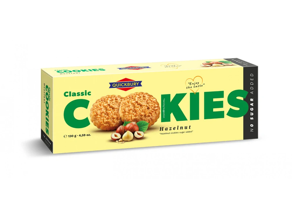 Quickbury lískooříšková Cookies sušenka bez přidaného cukru. Se sladidlem Maltitol. Hmotnost: 130 g