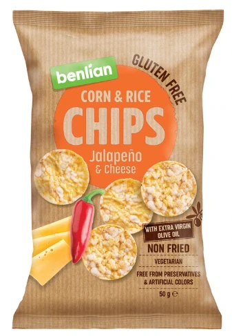 Snack vyrobený z kukuřice a rýže 50 g / benlian CHIPS jalapeňo a sýr - VÝPRODEJ !!! DMT: 8/2025