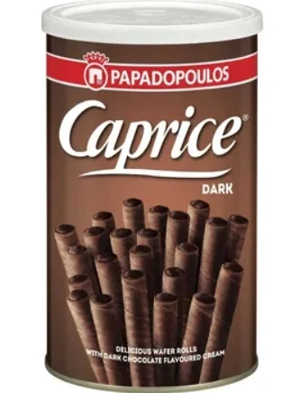 Ostatní informace: Výrobce: Papadopoulos. Země původu: EU (Řecko). Produkt je součástí nabídky waflových rolí Caprice v tmavé variaci.