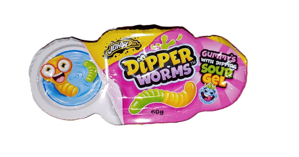 Želé červíci s kyselím gelem DIPPER WORMS, zábava s dobrou chutí. Hmotnost 60 g.
