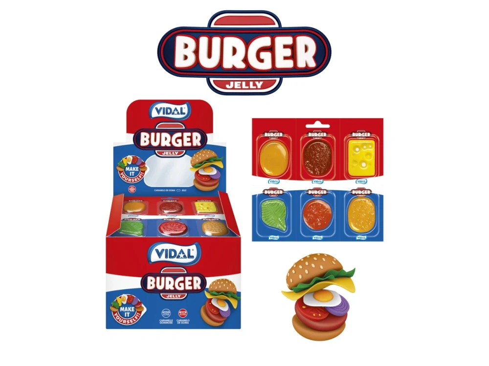 VIDAL BURGER jelly - Ovocné želé ve tvaru částí hamburgerů, jednotlivě balené.